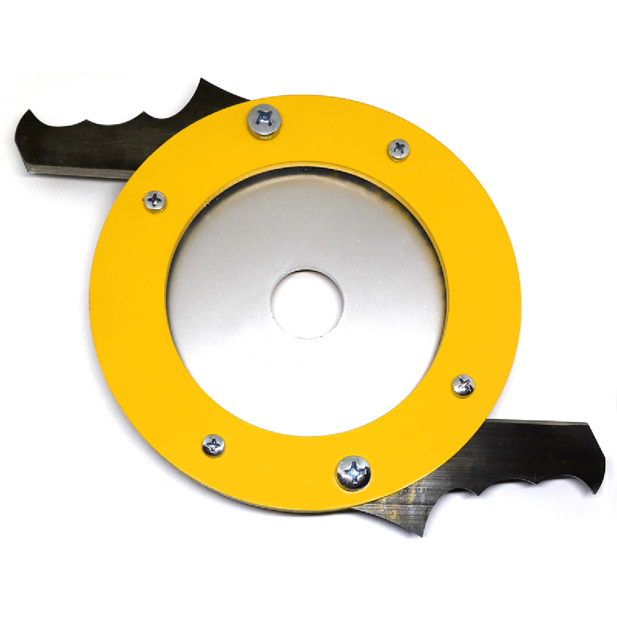 Με τρία πτερύγια διπλής κοπής απο ειδικό κράμα χάλυβα Uddeholm Σουηδίας.