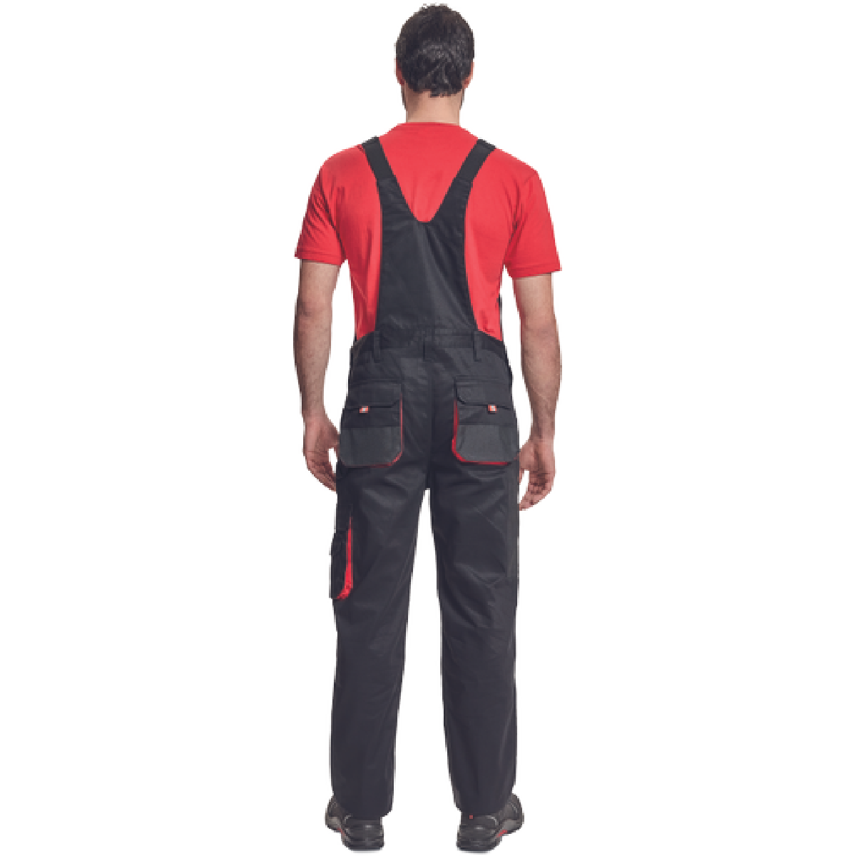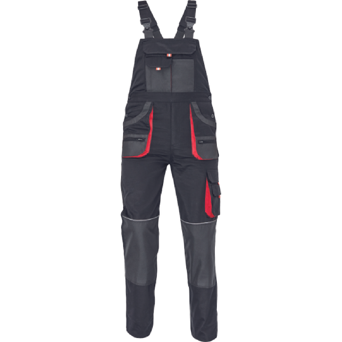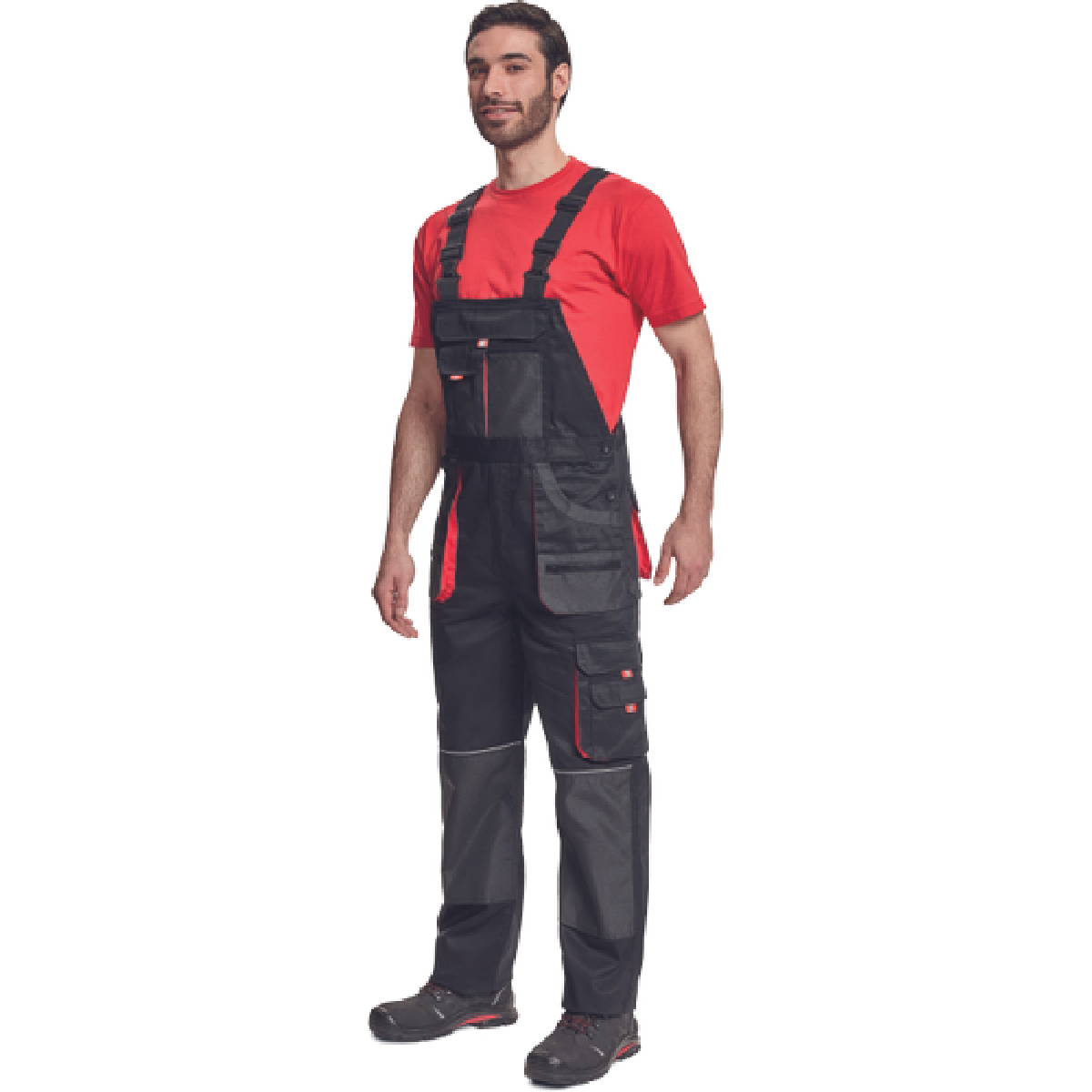 Βαμβακερή φόρμα τιράντα με 7 λειτουργικές τσέπες. Διπλής όψης κούμπωμα στη μέση με κουμπιά. Πολυεστερική ενίσχυση Oxford στα μέρη των γονάτων με δυνατότητα τοποθέτησης προστατευτικών επιγονατίδων. Ρυθμιζόμενο μήκος ποδιού.