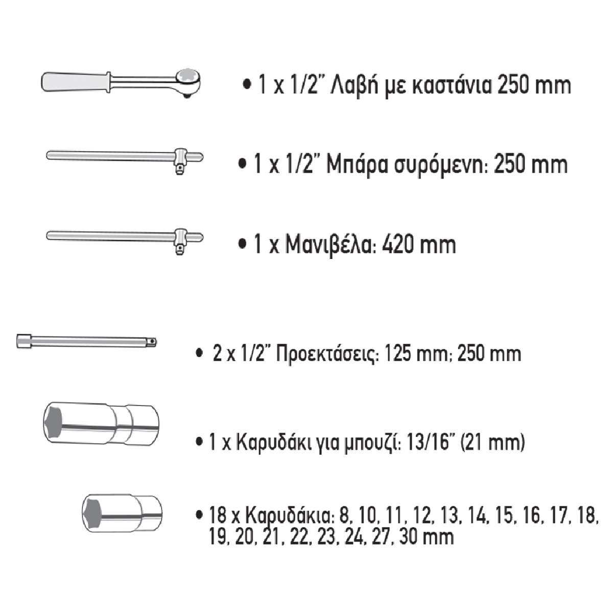 BASIC ΚΑΡΥΔΑΚΙΑ ΣΕΤ 24 τεμ 1/2” 330521