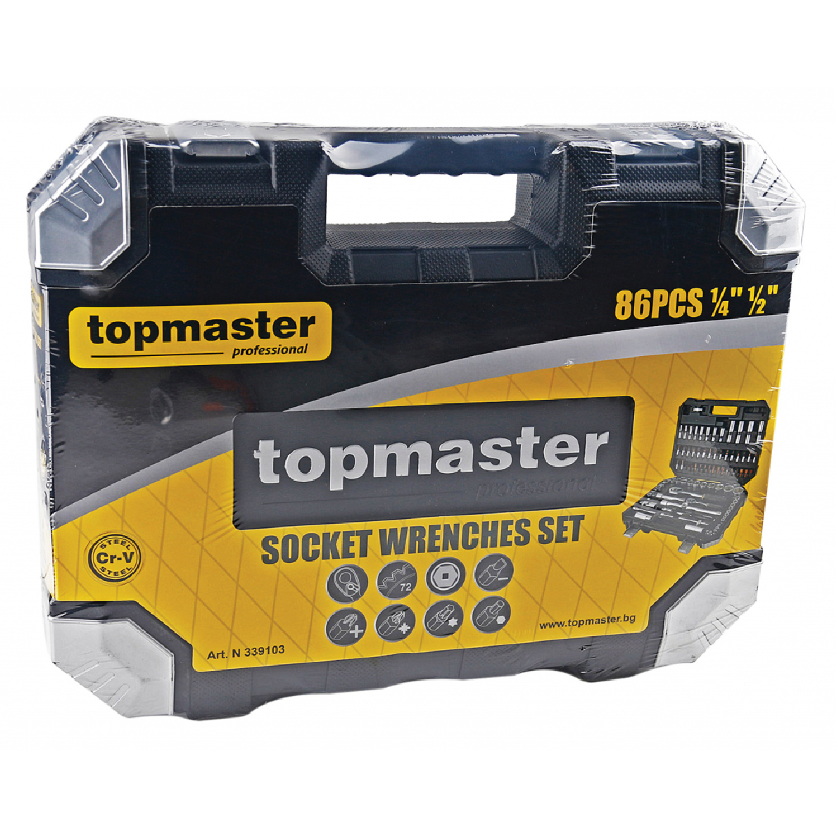 TOP MASTER ΚΑΣΕΤΙΝΑ ΚΑΡΥΔΑΚΙ Cr-V 1/4” & 1/2” ΣΕΤ 86τεμ 339103